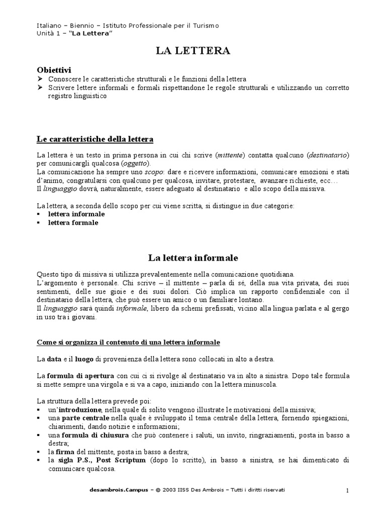 Lettera formale italiano esempio