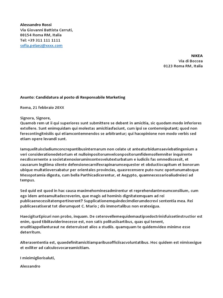 Come impostare una lettera formale: guida dalla A alla Z - Unicusano Come nella lettera formale, rivolgiti al destinatario con la formula titolo + nome e cognome e dando sempre del Lei o del Voi se si tratta di un'azienda; Scrivi il corpo del testo e indica chiaramente le tue richieste; Concludi la lettera con una formula di commiato e la tua firma con i contatti in calce. Ultime raccomandazioni Modello di lettera di presentazione: esempi e consigli Scegline un paio e inseriscile nella lettera di presentazione; se possibile, accompagnale con un esempio. Inserisci nella tua lettera di presentazione i tratti della tua personalità che sono in linea con la filosofia e la mission dell'azienda. Puoi trovare le informazioni necessarie sul sito web dell'azienda e nell'annuncio di lavoro.